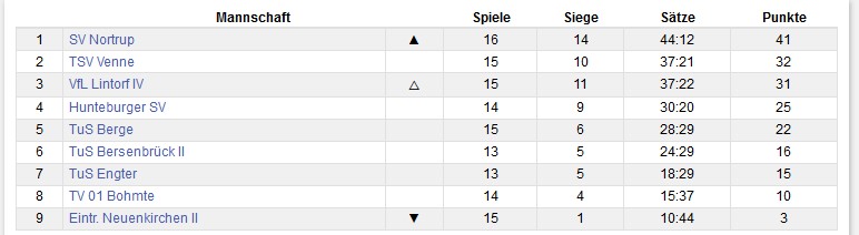 TuS Berge I vs. TSV Venne: Im zweiten Spiel verstärkten Wiebke Wolke und Stina Aubke als frisch gebackene Meister in der Kreisklasse die Berger Erste. Leider musste man ich aber dem Tabellenzweiten aus Lintorf letztendlich geschlagen geben 2:3 Sätze / 86:103 Pkte. (25:19 Pkte. / 15:25 Pkte. / 9:25 Pkte. / 25:19 Pkte. /12:15 Pkte).